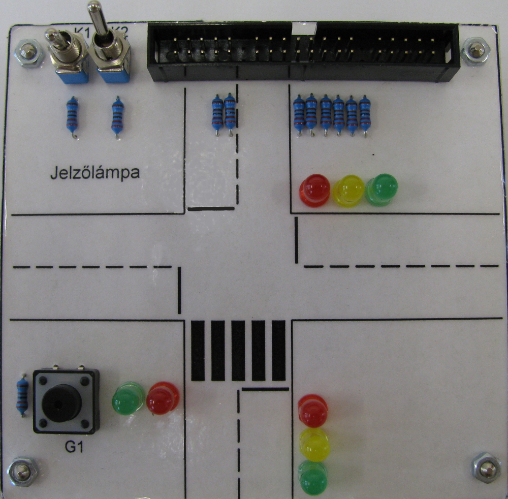 - gyalogátkelőhely vezérlése, ahol a lámpák időzítését lehet szabályozni a PLC A/D átalakítójára kapcsolt potenciméterrel