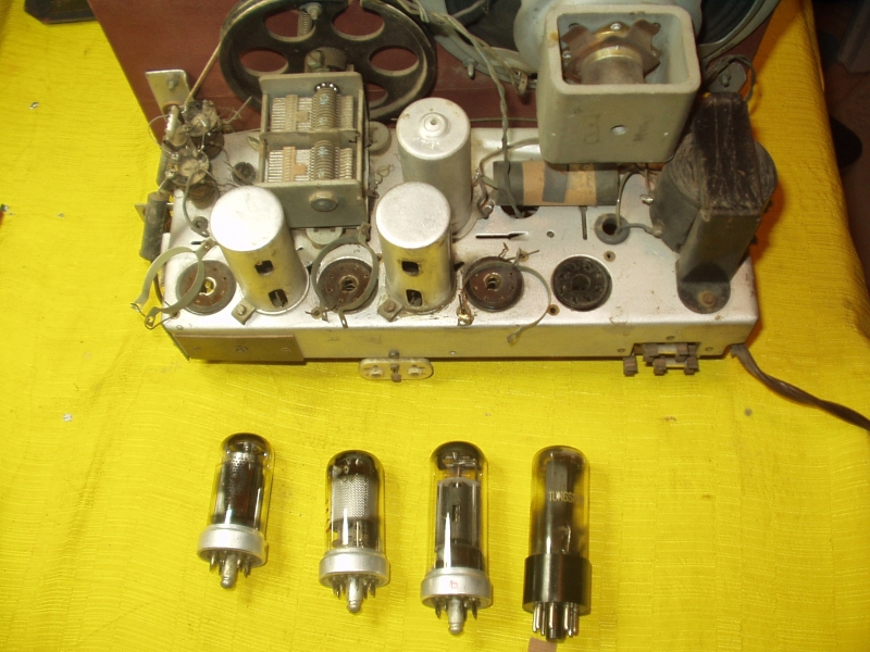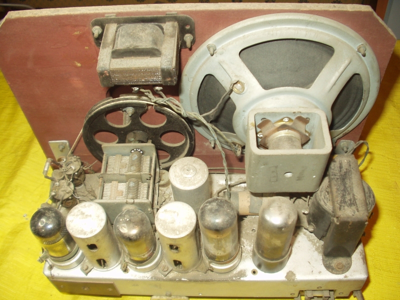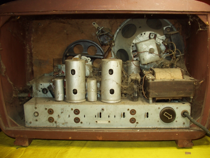 A rádió doboza szép állapotban volt. Letisztítottam, felpolíroztam és konzerváltam. A belseje rettenetesen poros volt. Kitisztítottam alaposan, a mozgó alkatrészeket megzsíroztam. Kicseréltem a két skálaizzót. Felújítottam az elektrolit kondenzátorokat (a belsejükbe új elkót raktam). Megjavítottam a recsegő potenciométert, kicseréltem a hibás végcsövet, meg néhány kondenzátort. A rádió ettől kezdve remekül működött! |
